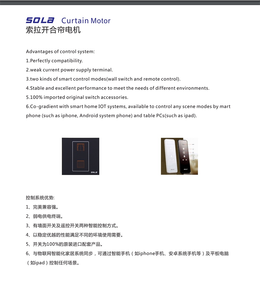 索拉電動開合簾電機