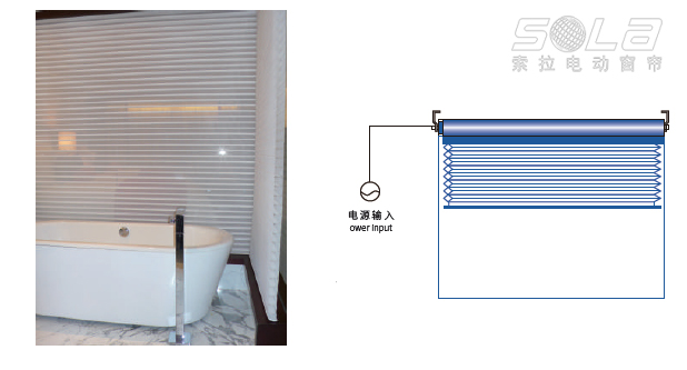 同,采用不同管徑的電動卷簾,配各種類型面料以達不同的遮陽效果;